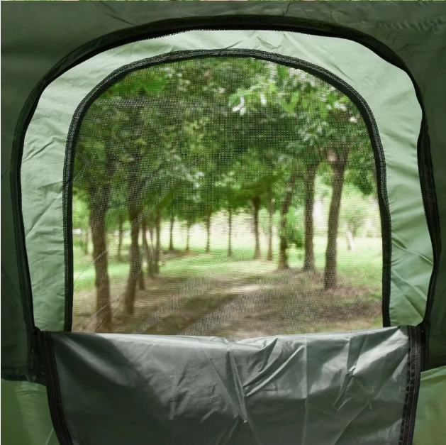 Tältet har vattenavvisande beläggning och insektsnät som håller dig torr, säker och ostörd.