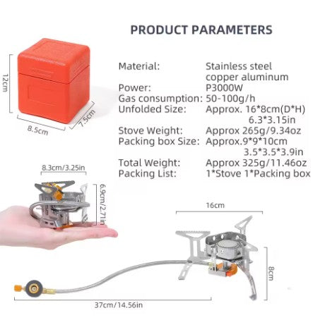 När du vill resa lätt men ändå kunna laga varm mat är detta mini-gasolkök den perfekta lösningen. Med en vikt på endast 238 g och en smart hopfällbar design ryms det enkelt i ryggsäcken, fickan eller krislådan. Trots sin storlek levererar det hela 3000W effekt, vilket gör att du kan koka vatten eller steka mat på bara några minuter.