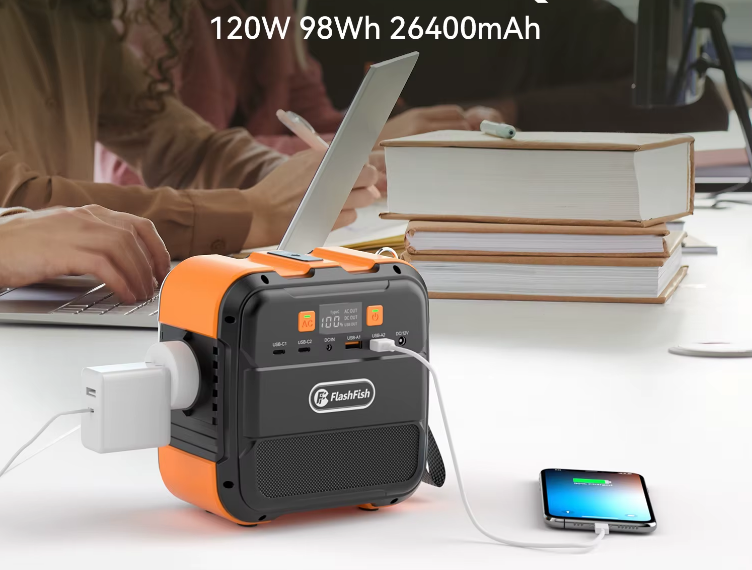 AC-adapter, biluttag eller solpanel (MPPT-stöd för effektiv solcellsladdning).