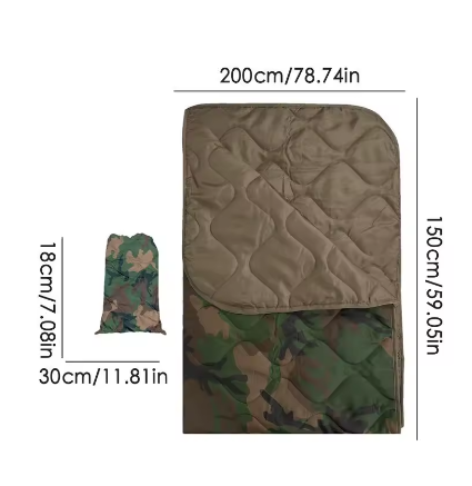 Håll värmen under kalla kvällar och hårt väder med vår lättviktiga och packbara campingfilt, designad för friluftsliv, camping, jakt och överlevnad. Den torkar snabbt, är vattentålig och ger pålitlig värme även när temperaturen sjunker.