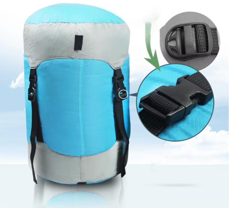 Den här vattentäta kompressionspåsen i nylon hjälper dig att spara utrymme i ryggsäcken eller väskan genom att pressa ner sovsäckar, kläder och utrustning till ett minimum.